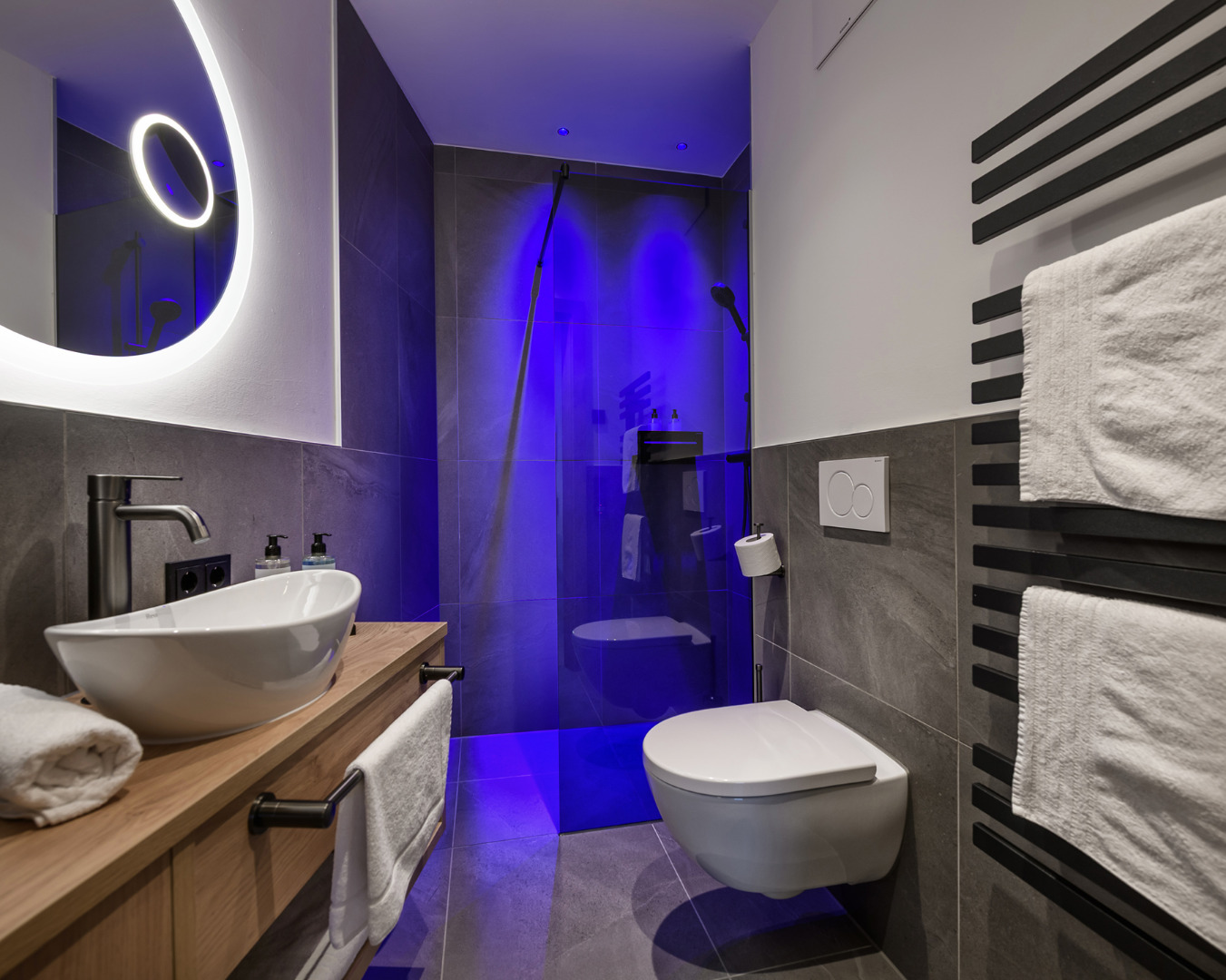 Das Zimmer verfügt entweder über ein offenes oder geschlossenes Badezimmer und teilweise über ein getrenntes WC.
